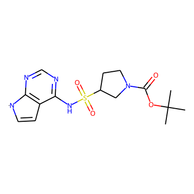 CC(C)(C)OC(=O)N1CCC(S(=O)(=O)Nc2ncnc3c2C=C[N]3)C1| HBA: | 9 | RingCount: | 3 |