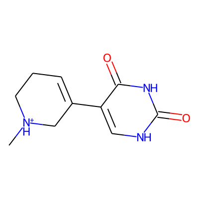 C[NH+]1CCC=C(c2c[nH]c(=O)[nH]c2=O)C1| HBA: | 5 | RingCount: | 2 |