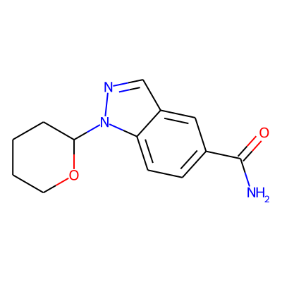 NC(=O)c1ccc2c(cnn2C2CCCCO2)c1| HBA: | 5 | RingCount: | 3 |