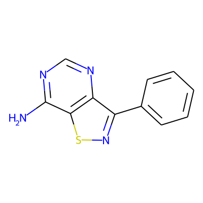 Nc1ncnc2c(-c3ccccc3)nsc12| HBA: | 4 | RingCount: | 3 |