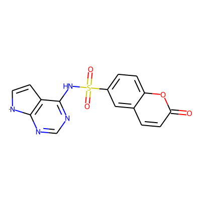 O=c1ccc2cc(S(=O)(=O)Nc3ncnc4c3C=C[N]4)ccc2o1| HBA: | 8 | RingCount: | 4 |