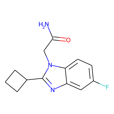 NC(=O)Cn1c(C2CCC2)nc2cc(F)ccc21| HBA: | 4 | RingCount: | 3 |