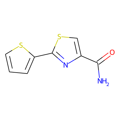 NC(=O)c1csc(-c2cccs2)n1| HBA: | 3 | RingCount: | 2 |