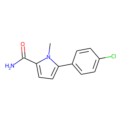 Cn1c(C(N)=O)ccc1-c1ccc(Cl)cc1| HBA: | 3 | RingCount: | 2 |