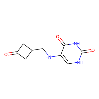 CC(=O)OC[C@H]1O[C@@H](n2cc(NCC3CC(=O)C3)c(=O)[nH]c2=O)[C@H](OC(C)=O)[C@@H]1OC(C)=OAglycone: