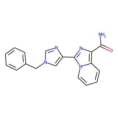NC(=O)c1nc(-c2cn(Cc3ccccc3)cn2)n2ccccc12| HBA: | 6 | RingCount: | 4 |