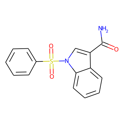 NC(=O)c1cn(S(=O)(=O)c2ccccc2)c2ccccc12| HBA: | 5 | RingCount: | 3 |