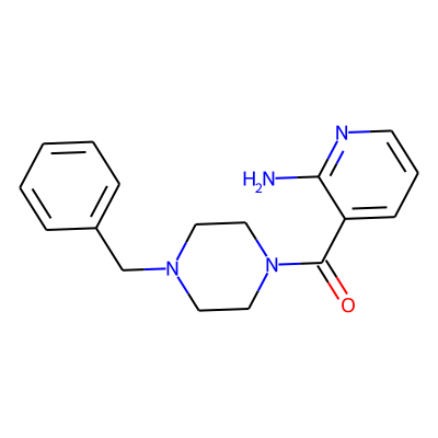 Nc1ncccc1C(=O)N1CCN(Cc2ccccc2)CC1| HBA: | 5 | RingCount: | 3 |