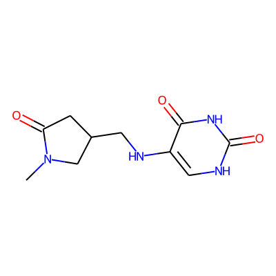 CN1CC(CNc2c[nH]c(=O)[nH]c2=O)CC1=O| HBA: | 7 | RingCount: | 2 |