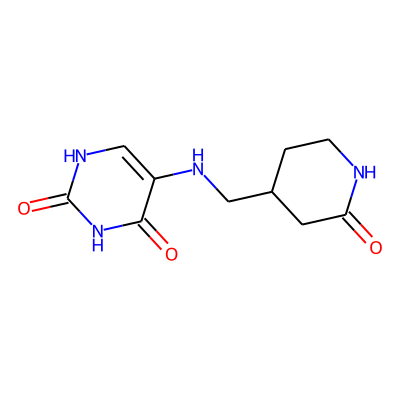O=C1CC(CNc2c[nH]c(=O)[nH]c2=O)CCN1| HBA: | 7 | RingCount: | 2 |