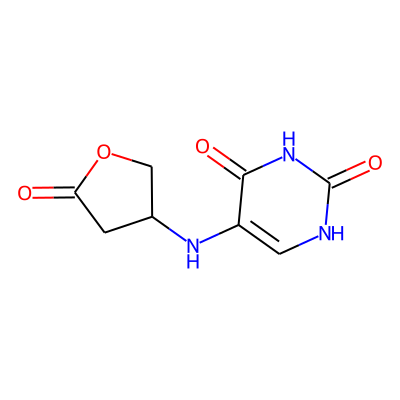 O=C1CC(Nc2c[nH]c(=O)[nH]c2=O)CO1| HBA: | 7 | RingCount: | 2 |