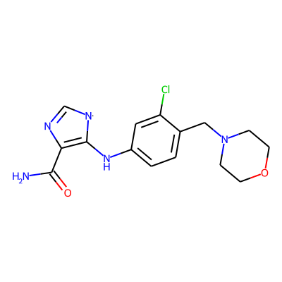 NC(=O)C1=C(Nc2ccc(CN3CCOCC3)c(Cl)c2)[N]C=N1| HBA: | 7 | RingCount: | 3 |