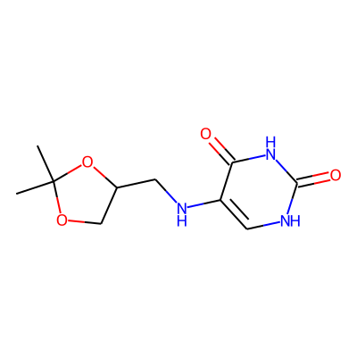 CC(=O)OC[C@H]1O[C@@H](n2cc(NC[C@@H]3COC(C)(C)O3)c(=O)[nH]c2=O)[C@H](OC(C)=O)[C@@H]1OC(C)=OAglycone: