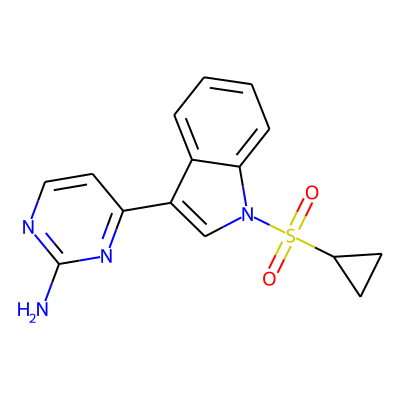 Nc1nccc(-c2cn(S(=O)(=O)C3CC3)c3ccccc23)n1| HBA: | 6 | RingCount: | 4 |