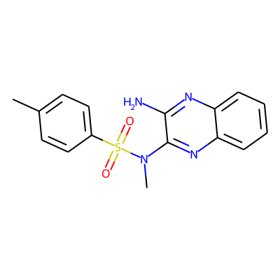 Cc1ccc(S(=O)(=O)N(C)c2nc3ccccc3nc2N)cc1| HBA: | 6 | RingCount: | 3 |