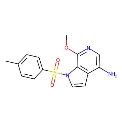 COc1ncc(N)c2ccn(S(=O)(=O)c3ccc(C)cc3)c12| HBA: | 6 | RingCount: | 3 |