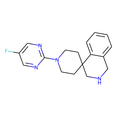 Fc1cnc(N2CCC3(CC2)CNCc2ccccc23)nc1| HBA: | 4 | RingCount: | 4 |