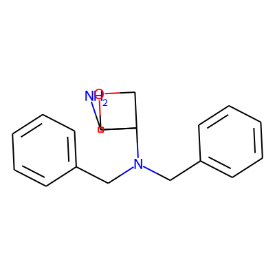 NCC1(N(Cc2ccccc2)Cc2ccccc2)COC1| HBA: | 3 | RingCount: | 3 |