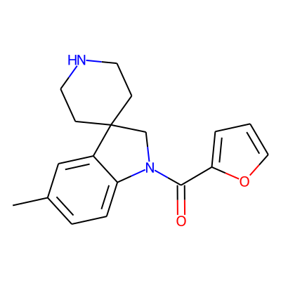 Cc1ccc2c(c1)C1(CCNCC1)CN2C(=O)c1ccco1| HBA: | 4 | RingCount: | 4 |