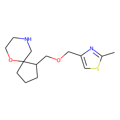 Cc1nc(COCC2CCCC23CNCCO3)cs1| HBA: | 4 | RingCount: | 3 |