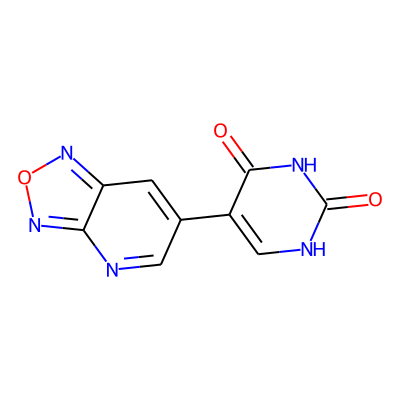 O=c1[nH]cc(-c2cnc3nonc3c2)c(=O)[nH]1| HBA: | 8 | RingCount: | 3 |