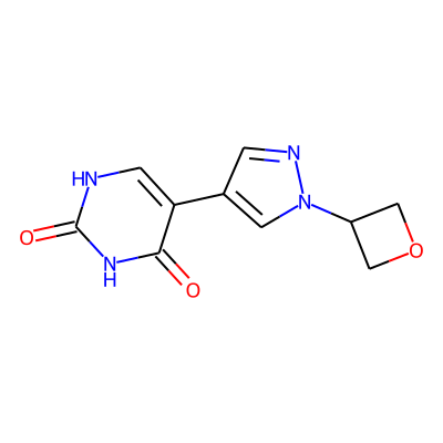 O=c1[nH]cc(-c2cnn(C3COC3)c2)c(=O)[nH]1| HBA: | 7 | RingCount: | 3 |