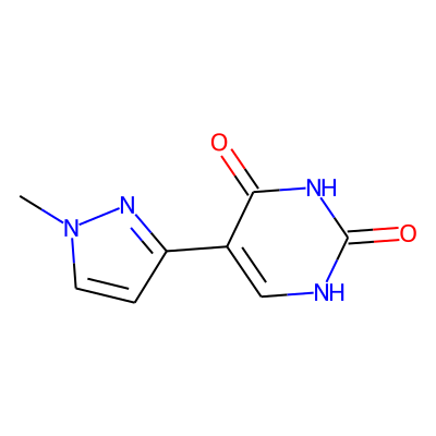 Cn1ccc(-c2c[nH]c(=O)[nH]c2=O)n1| HBA: | 6 | RingCount: | 2 |