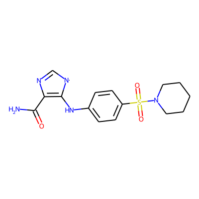 NC(=O)C1=C(Nc2ccc(S(=O)(=O)N3CCCCC3)cc2)[N]C=N1| HBA: | 8 | RingCount: | 3 |