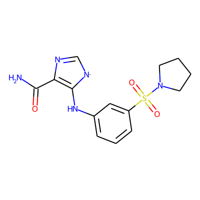 NC(=O)C1=C(Nc2cccc(S(=O)(=O)N3CCCC3)c2)[N]C=N1| HBA: | 8 | RingCount: | 3 |