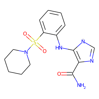 NC(=O)C1=C(Nc2ccccc2S(=O)(=O)N2CCCCC2)[N]C=N1| HBA: | 8 | RingCount: | 3 |