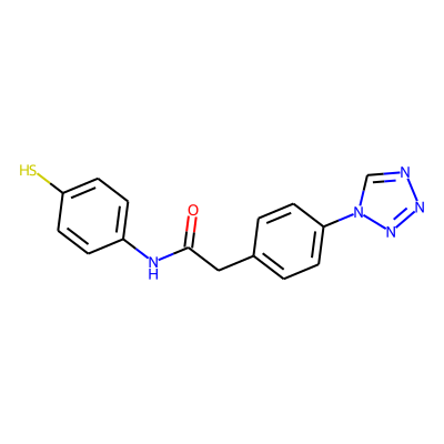 O=C(Cc1ccc(-n2cnnn2)cc1)Nc1ccc(S)cc1| HBA: | 6 | RingCount: | 3 |