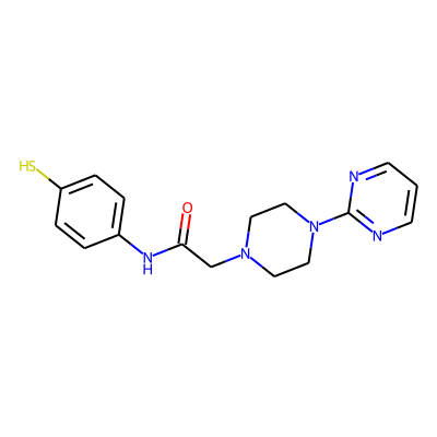 O=C(CN1CCN(c2ncccn2)CC1)Nc1ccc(S)cc1| HBA: | 6 | RingCount: | 3 |