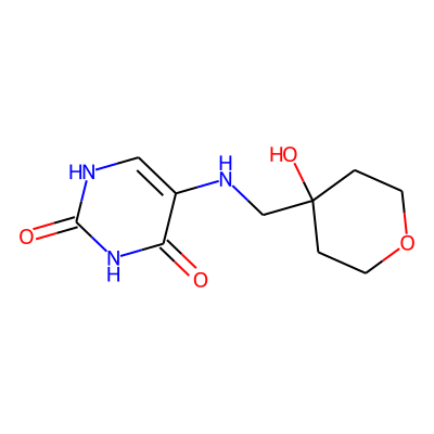 O=c1[nH]cc(NCC2(O)CCOCC2)c(=O)[nH]1| HBA: | 7 | RingCount: | 2 |