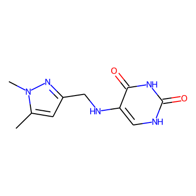 Cc1cc(CNc2c[nH]c(=O)[nH]c2=O)nn1C| HBA: | 7 | RingCount: | 2 |