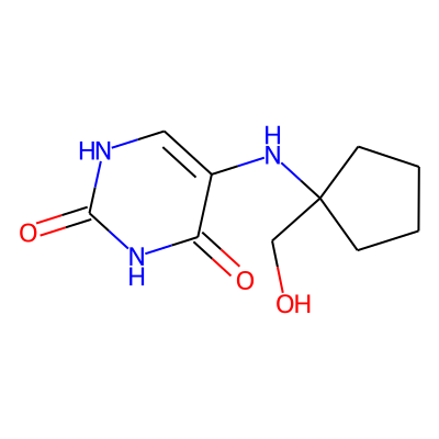 O=c1[nH]cc(NC2(CO)CCCC2)c(=O)[nH]1| HBA: | 6 | RingCount: | 2 |