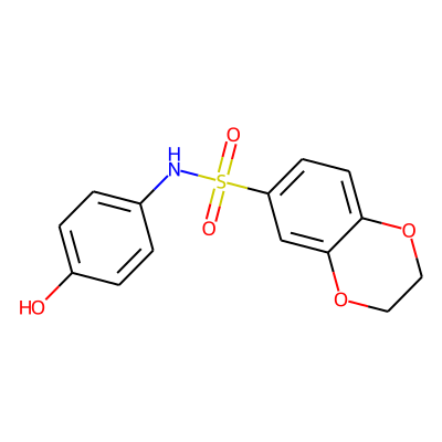 O=S(=O)(Nc1ccc(O)cc1)c1ccc2c(c1)OCCO2| HBA: | 6 | RingCount: | 3 |