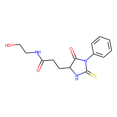 O=C(CCC1NC(=S)N(c2ccccc2)C1=O)NCCO| HBA: | 6 | RingCount: | 2 |