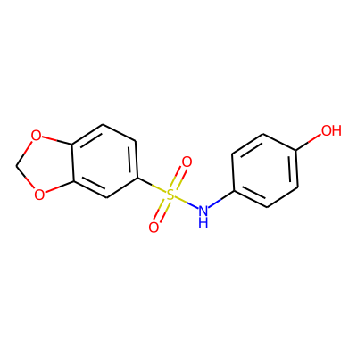 O=S(=O)(Nc1ccc(O)cc1)c1ccc2c(c1)OCO2| HBA: | 6 | RingCount: | 3 |