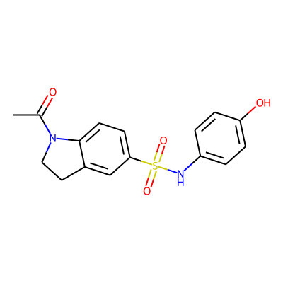 CC(=O)N1CCc2cc(S(=O)(=O)Nc3ccc(O)cc3)ccc21| HBA: | 6 | RingCount: | 3 |