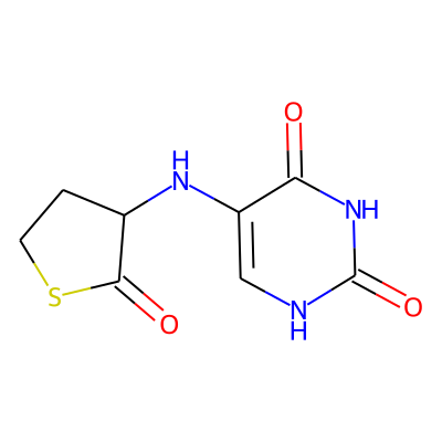 O=C1SCCC1Nc1c[nH]c(=O)[nH]c1=O| HBA: | 6 | RingCount: | 2 |