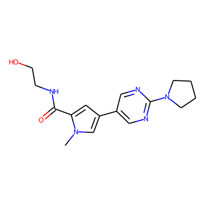 Cn1cc(-c2cnc(N3CCCC3)nc2)cc1C(=O)NCCO| HBA: | 7 | RingCount: | 3 |