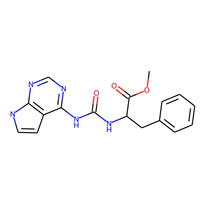 COC(=O)C(Cc1ccccc1)NC(=O)Nc1ncnc2c1C=C[N]2| HBA: | 8 | RingCount: | 3 |