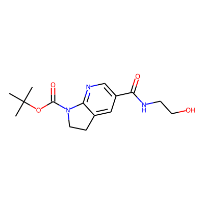 CC(C)(C)OC(=O)N1CCc2cc(C(=O)NCCO)cnc21| HBA: | 7 | RingCount: | 2 |