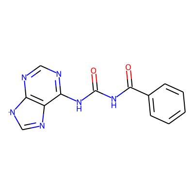 O=C(NC(=O)c1ccccc1)Nc1ncnc2c1N=C[N]2| HBA: | 8 | RingCount: | 3 |