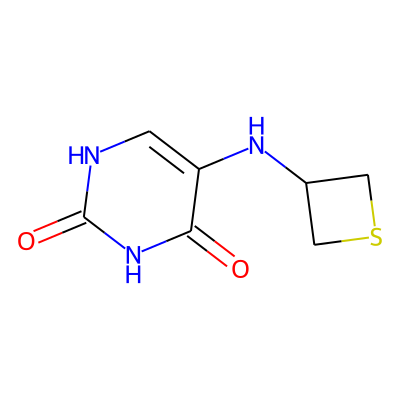 O=c1[nH]cc(NC2CSC2)c(=O)[nH]1| HBA: | 5 | RingCount: | 2 |