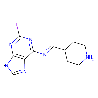 Ic1nc2c(c(N=CC3CC[NH2+]CC3)n1)N=C[N]2Sugarmoiety: