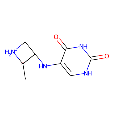 CCC1(Nc2c[nH]c(=O)[nH]c2=O)C[NH2+]C1| HBA: | 6 | RingCount: | 2 |