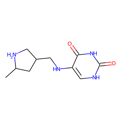 CC1CC(CNc2c[nH]c(=O)[nH]c2=O)C[NH2+]1| HBA: | 6 | RingCount: | 2 |