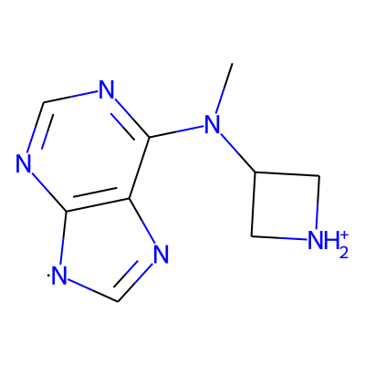 CN(c1ncnc2c1N=C[N]2)C1C[NH2+]C1| HBA: | 6 | RingCount: | 3 |