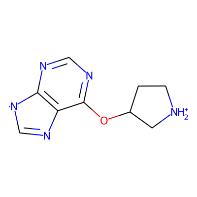 C1=Nc2c(ncnc2OC2CC[NH2+]C2)[N]1| HBA: | 6 | RingCount: | 3 |